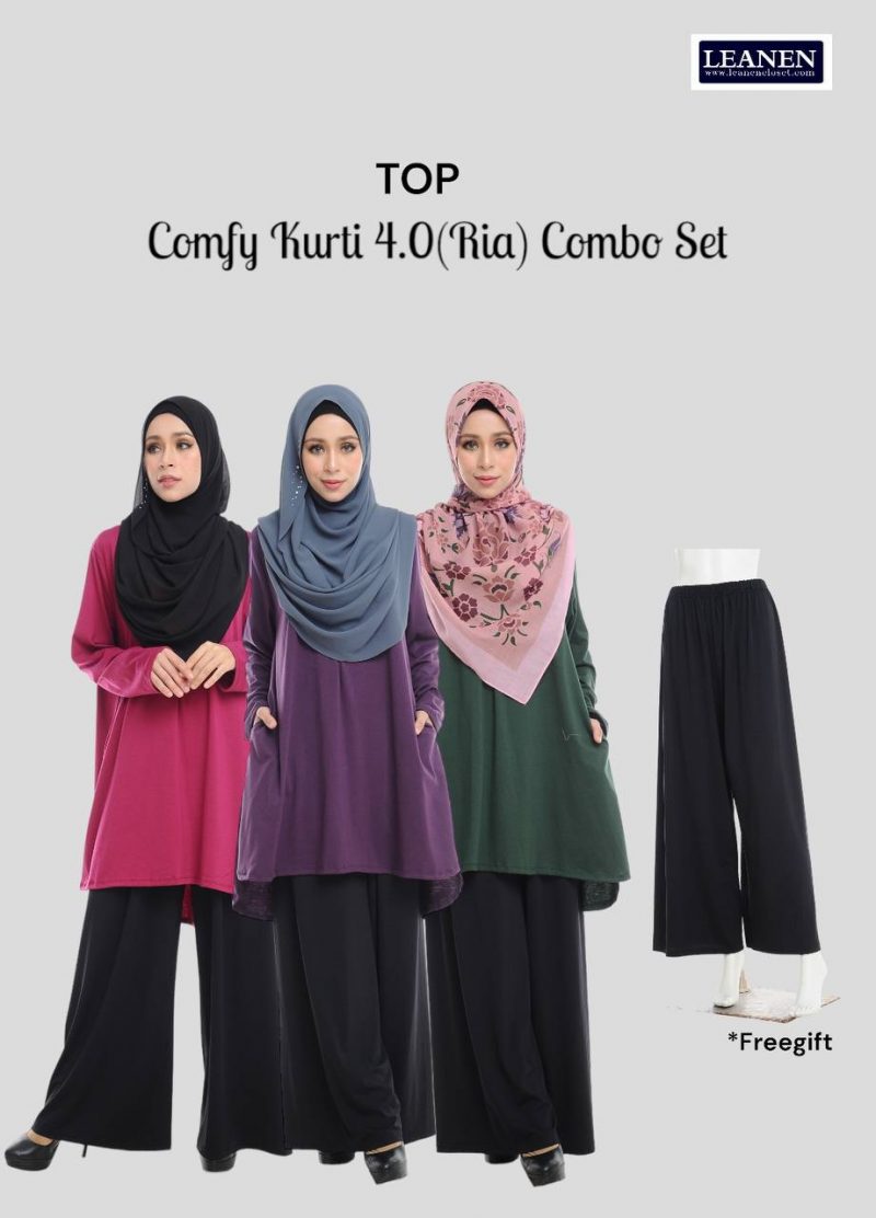• Set pakej ialah 3 helai comfy kurti + 1 percuma palazo (hitam)